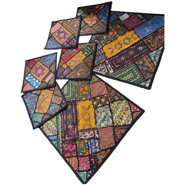 Add vibrant charm and ethnic elegance to your home with our stunning Handmade Table Decor Set. Beautifully crafted using traditional Kutchi patchwork embroidery, this set is made from a collection of vintage fabric pieces, skillfully stitched together to create a unique and colorful masterpiece.